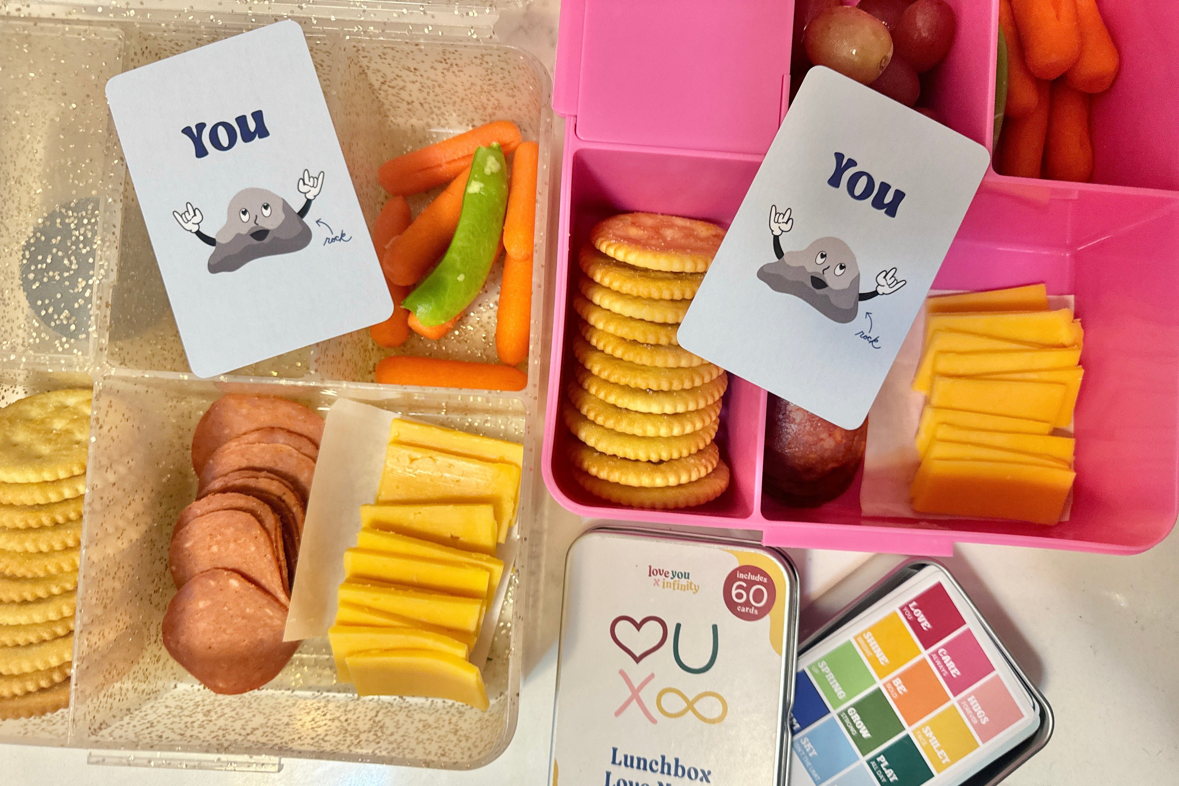 I'm Kate, mama to two incredible children. I'm also a creative director & graphic designer based in Los Angeles. Since our kids have been in preschool we've scribbled, often very rushed, notes for their lunchboxes. After years of thinking "I should really design some super cool notes that could go in their lunches," I finally did! Last school year, each Sunday I would come up with five designs for the week. Our kids would test, approve and even give really great feedback, much of which I implemented prior to sending set one (yes, more sets are in the works, don't worry) to print. So, they really are mama-designed, kid-approved Lunchbox Love Notes! My goal was to make something that helps kids feel extra loved and saves parents time.